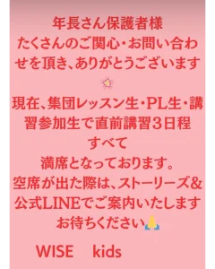 👩🏫年長児対象・少人数制のため全枠、残席わずか‼️